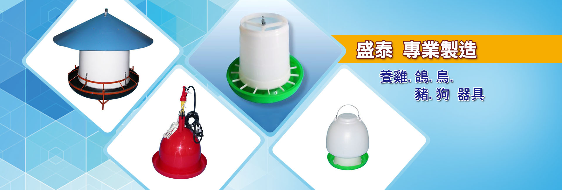 盛泰塑膠廠 我們是專業製造雞籠、鴨籠、鳥籠、鴿籠,塑膠底盤及各式養雞,養鴿,養鳥,飲水設備,餵食器皿....等, 50年的老店.品質有保證, 不斷的創新與發展,從設計、開模 ,一貫作業本公司也承接各種塑膠射出押出代工